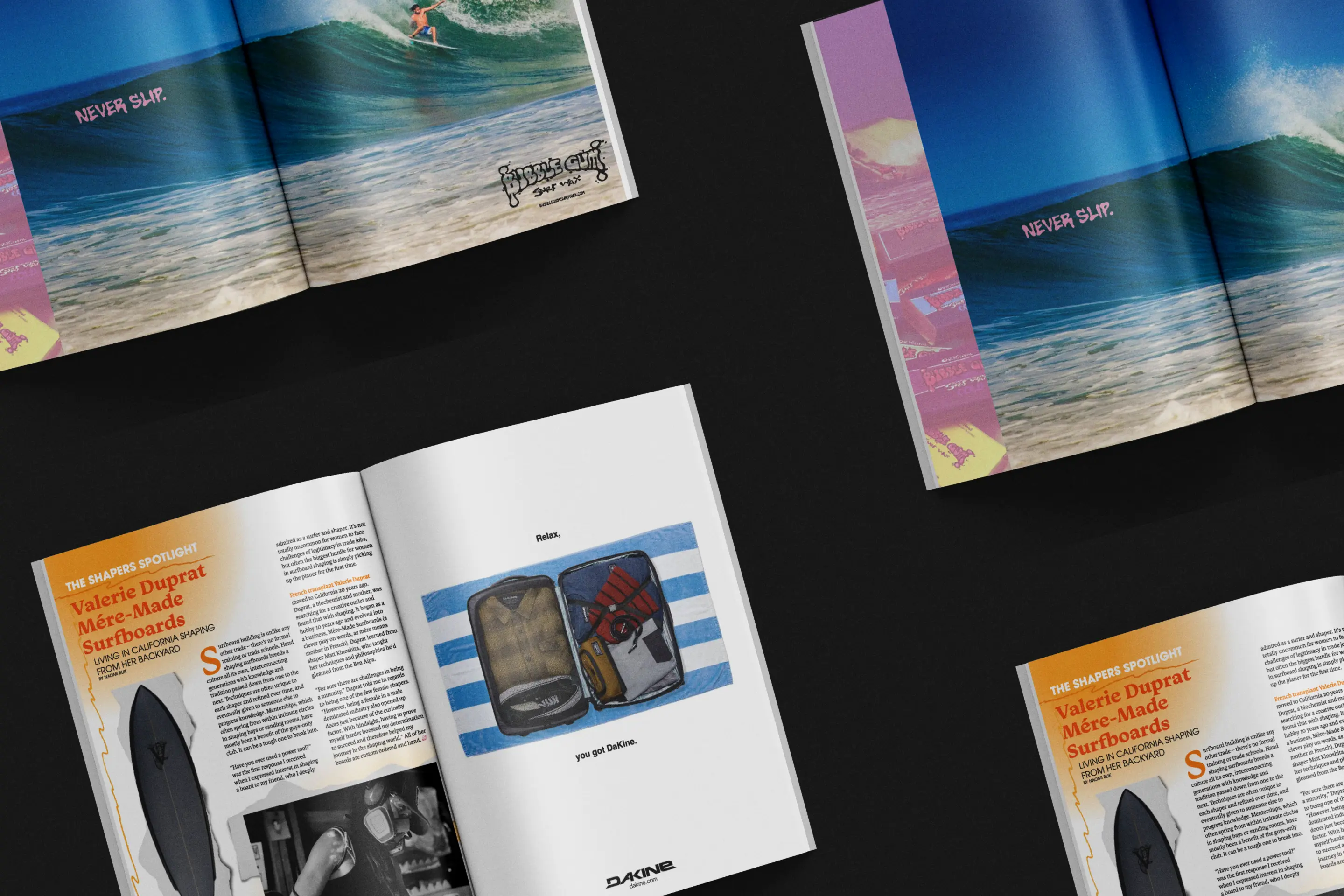 An editorial travel project merging sustainable travel with surf culture, combining visual language of rough illustration and grid systems. Balancing playful spontaneity with contemporary minimalism, reflecting an ethos of conscious adventure.